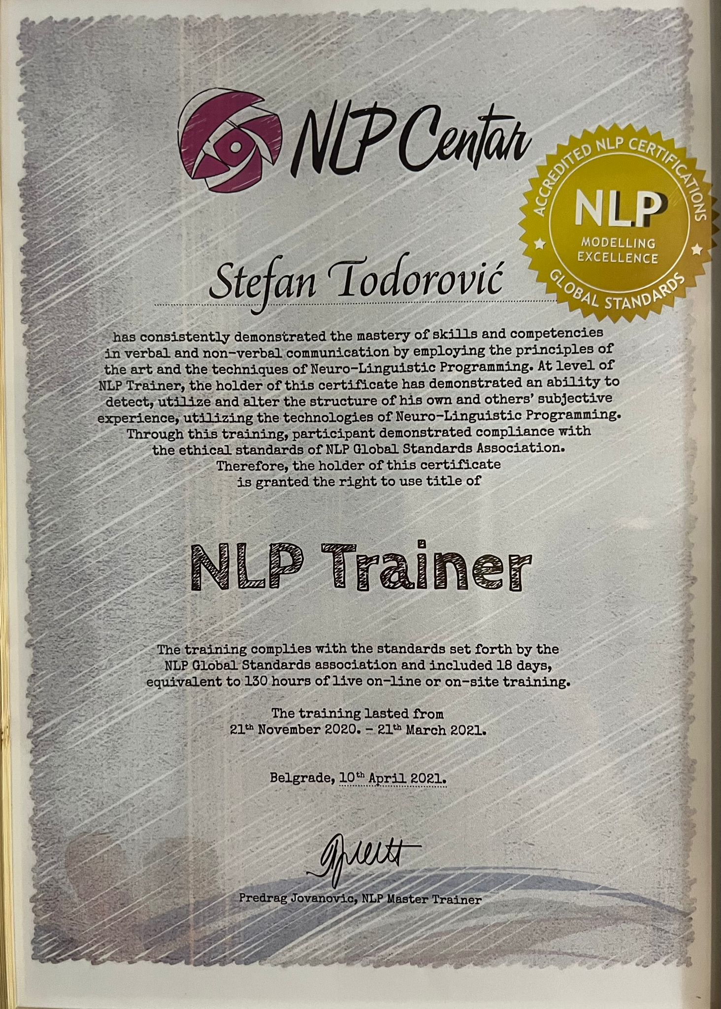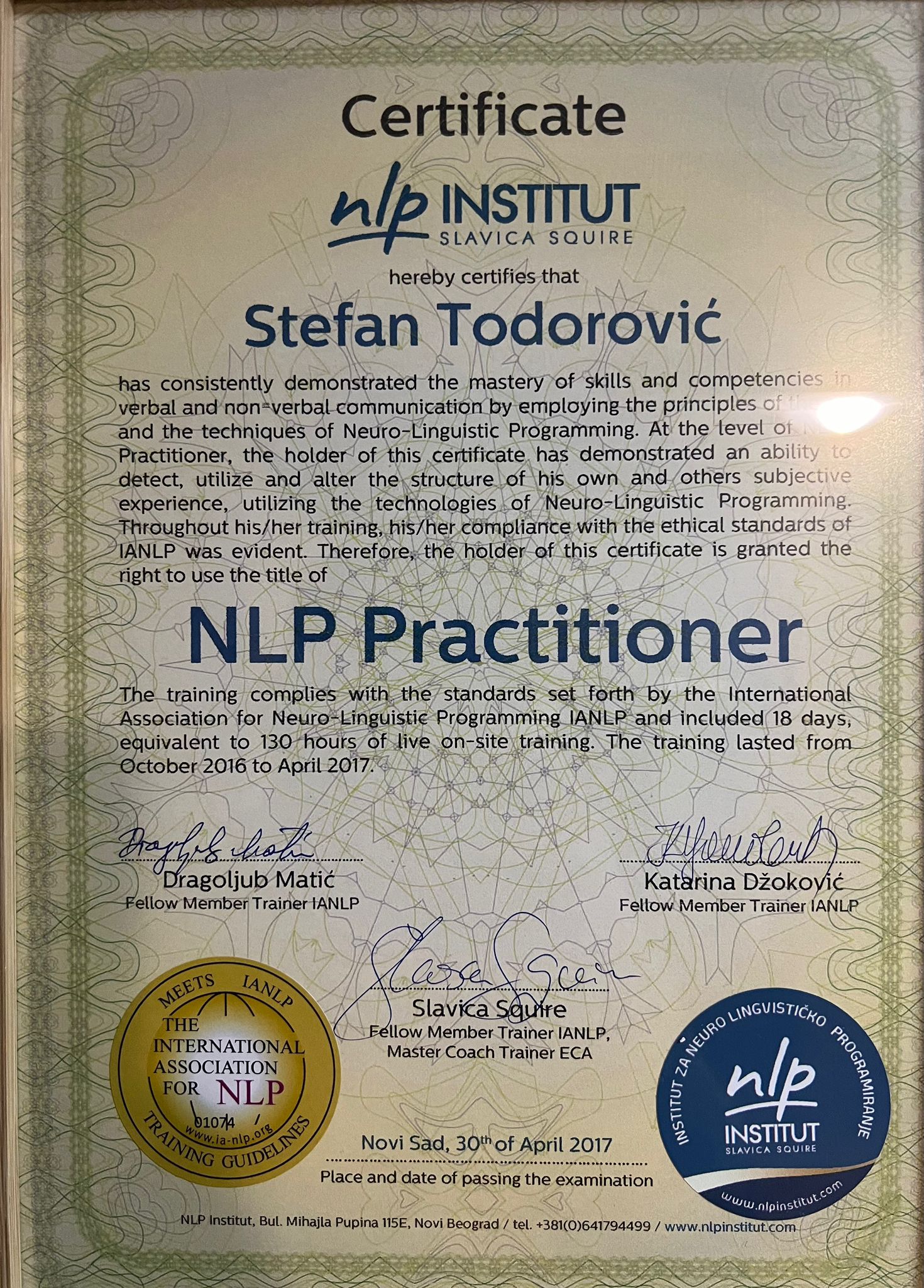 NLP Trainer, professional & business coach, peat procesor, reiki praktičar, deep coaching, energy balance coach, coaching for leadership excellence